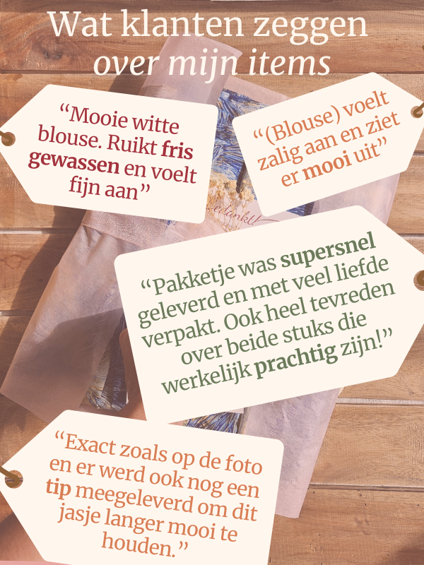 Op werkdagen vóór 14:00 besteld = vandaag nog verzonden. Bestellingen na 14:00 worden de volgende dag verzonden en in het weekend op maandag. Elke verzending is incl. track&trace, die ontvang je wanneer ik jouw pakket heb verzonden.
